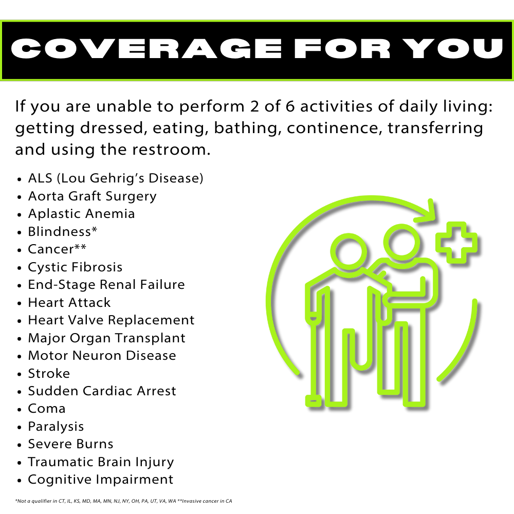 Receive money during your lifetime for a qualifying diagnosis of Alzheimer’s disease or Lewy Body Dementia.